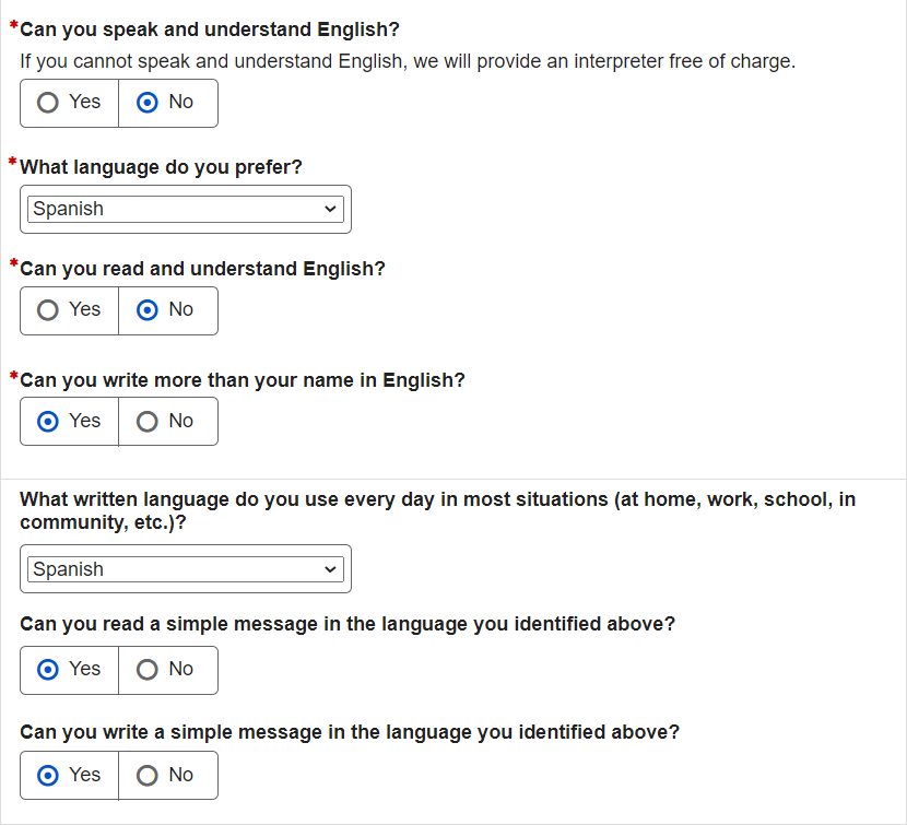 Beneficiaries struggled to understand why language related questions were split between the two sections. They felt the questions were redundant: