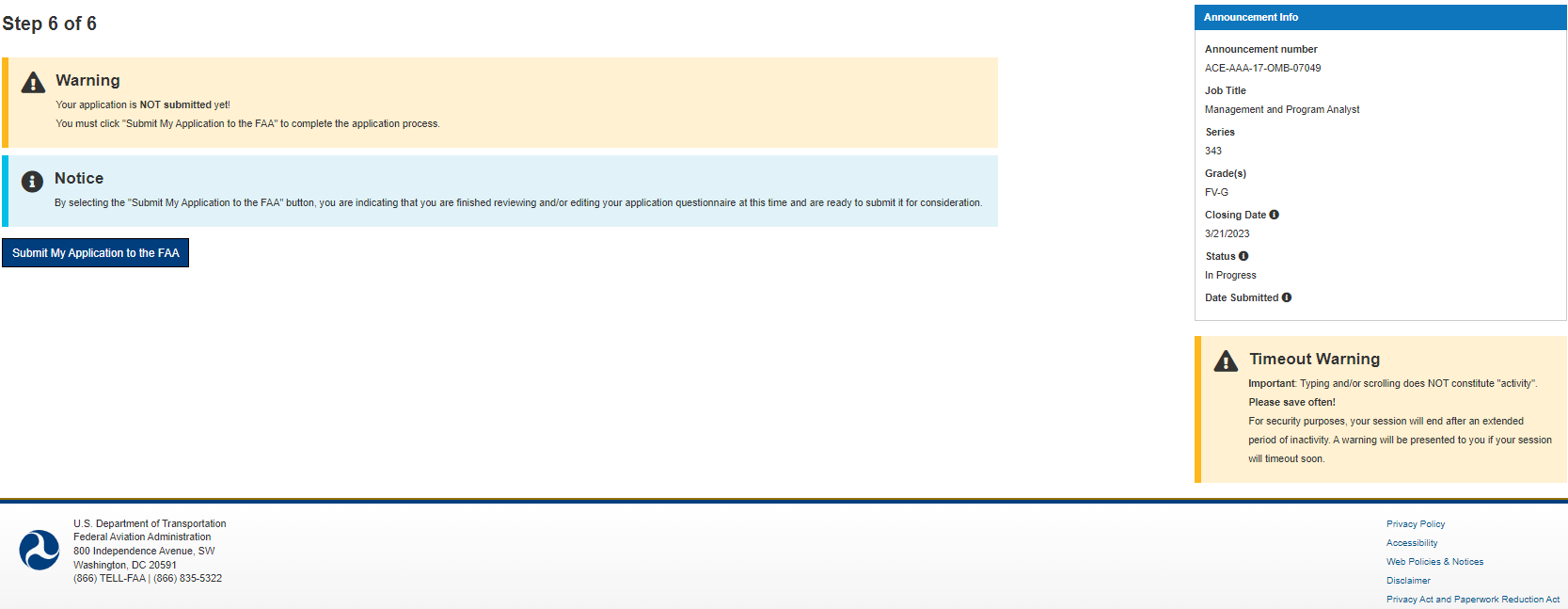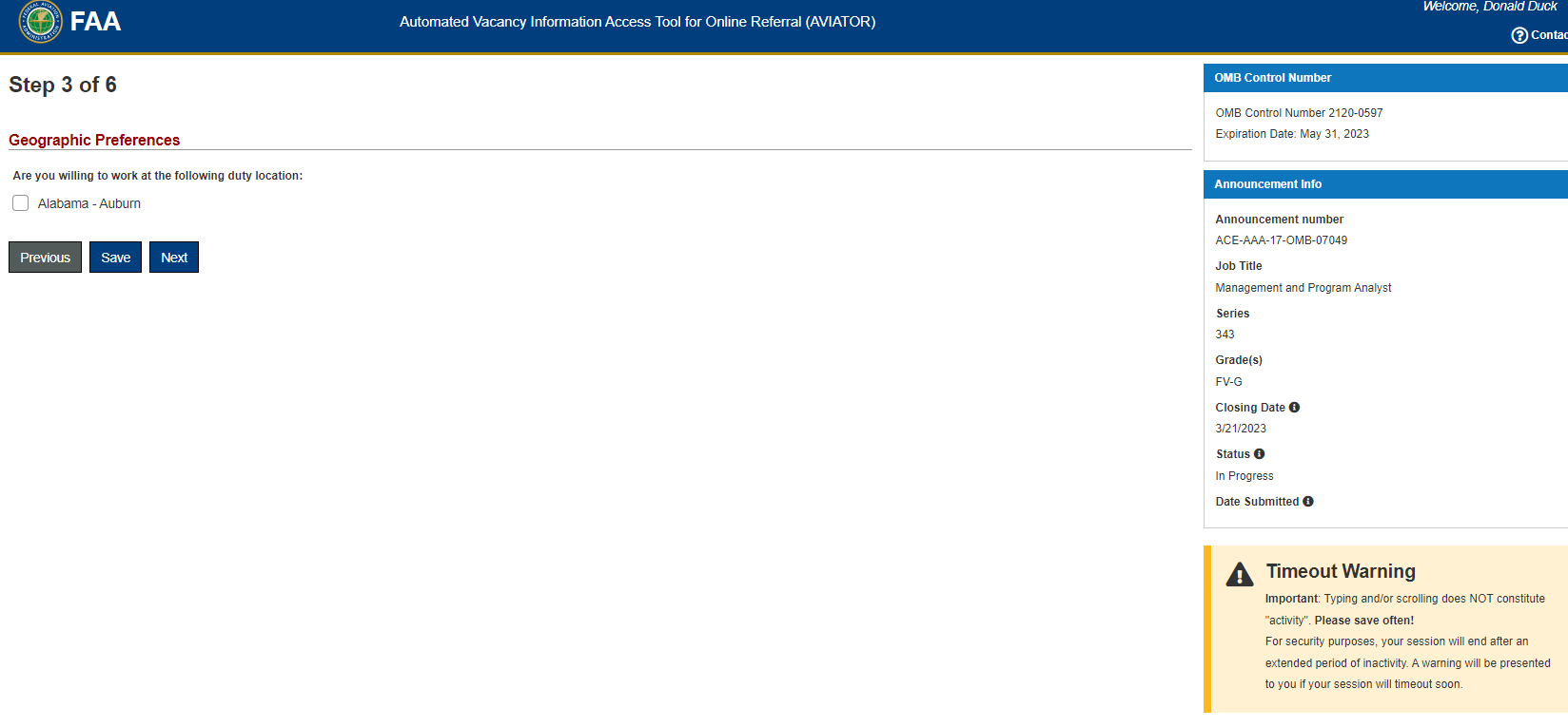 Screenshots (Sample FAA Application for Job Series 343 Vacancy)