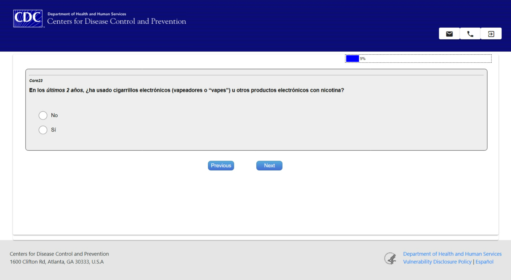 Phase 9 Core Web Questionnaire – Spanish
