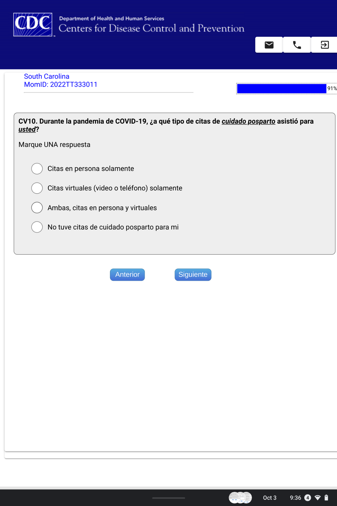 PRAMS COVID-19 Experience Supplemental Module: Spanish Web