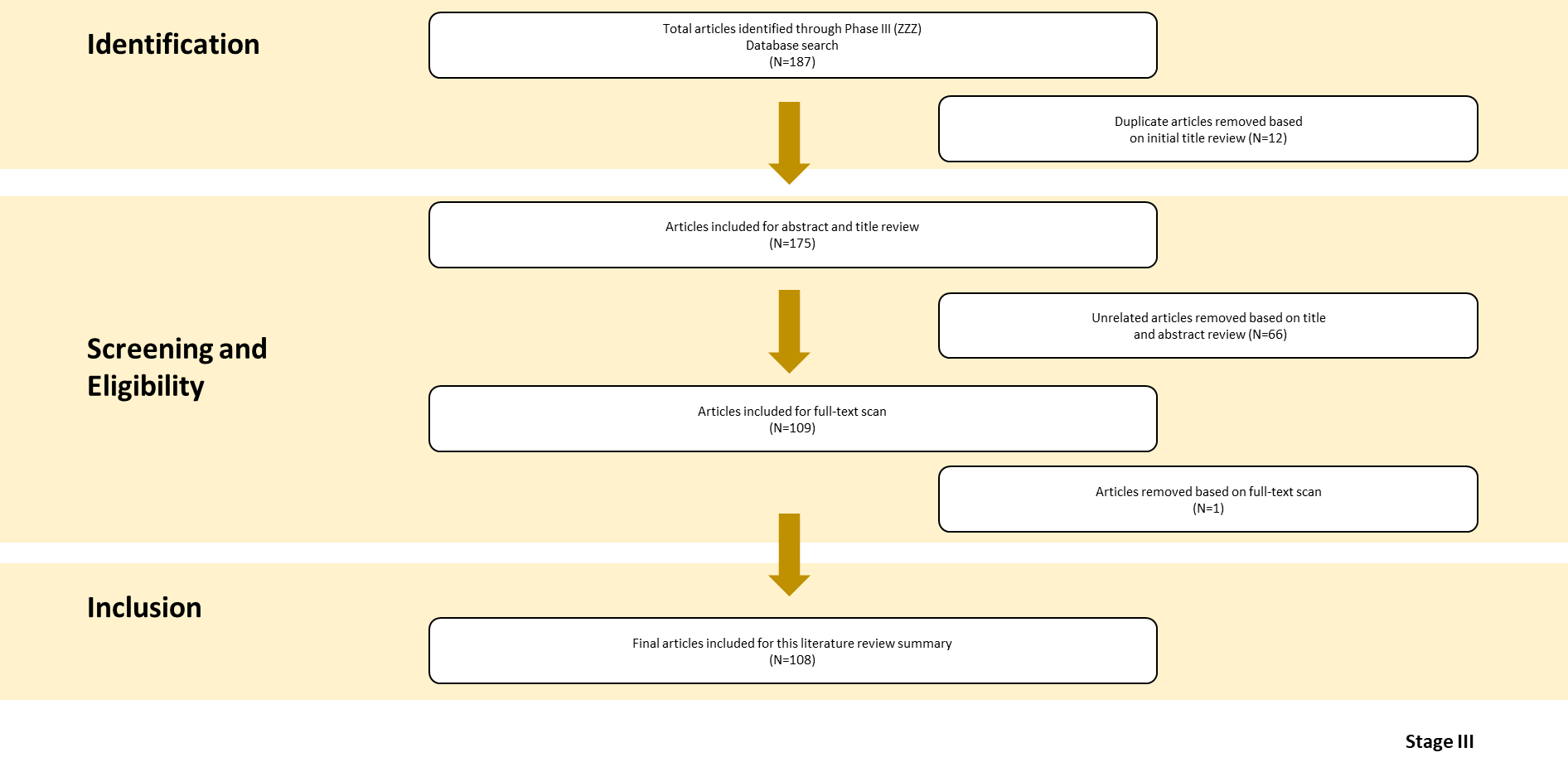 Articles in English meeting the search criteria and time frame constraints (January 2021 to present for the Phase IV search) were eligible for inclusion in the literature search.