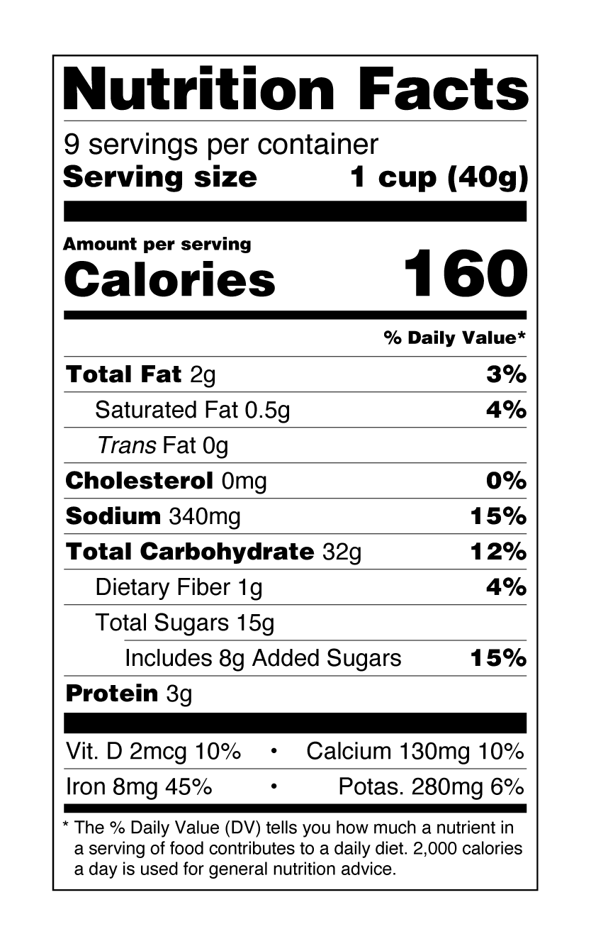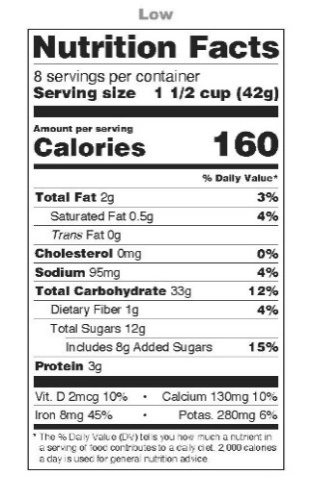 In this survey, you will be asked to look at different kinds of Front of Package nutrition labels and answer questions about them. The image below shows an example of what we mean by Front of Package nutrition labels.