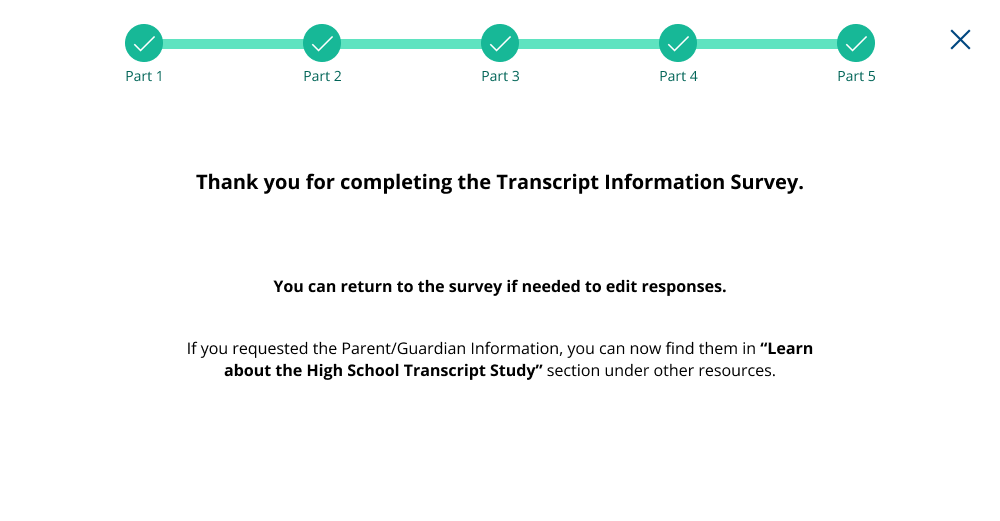 Figure 26: Screenshot of Transcript Information Survey, Thank You