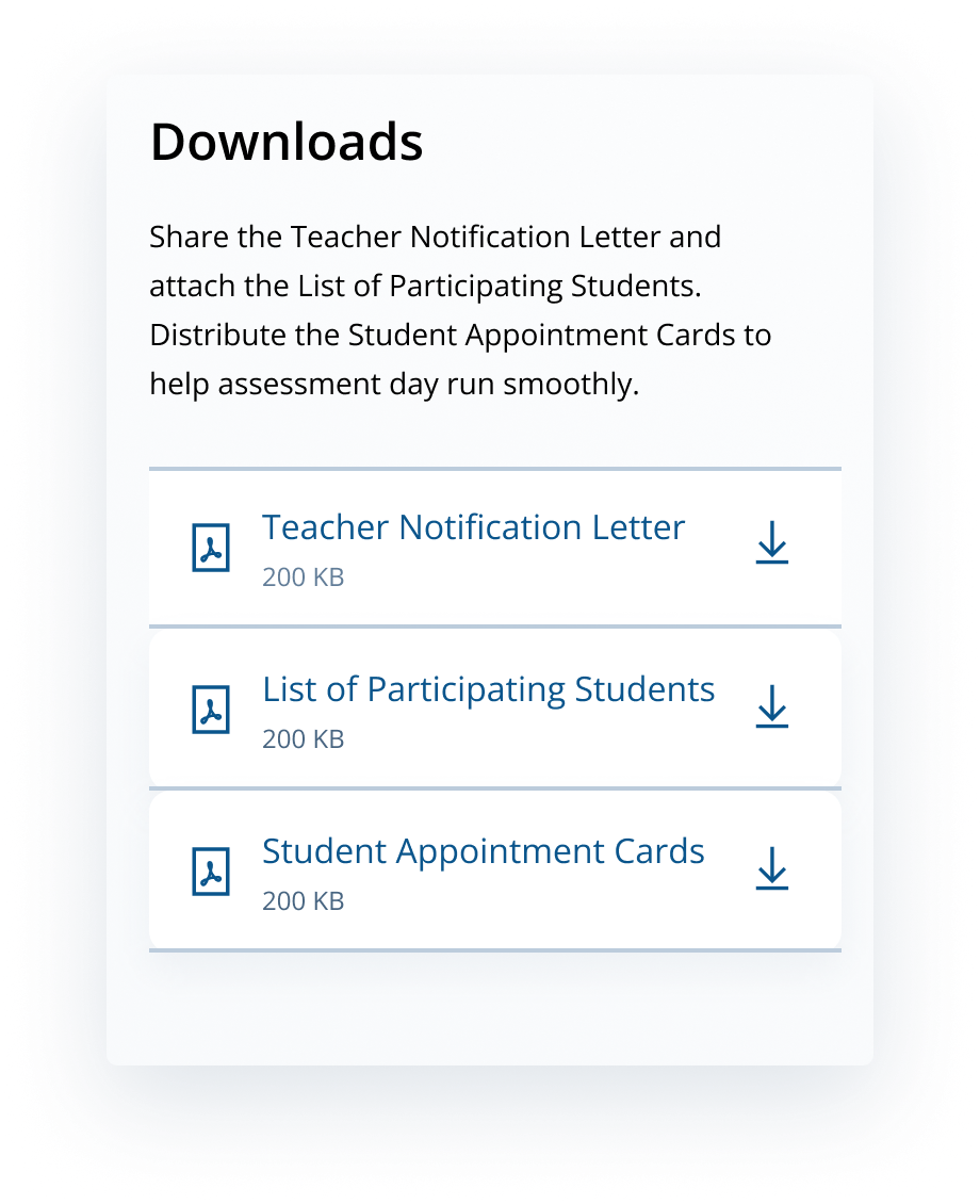 On the step 2 tile, districts can download the Sampled Student List Template, which contains the list of students selected for the study, by selecting “Download.”