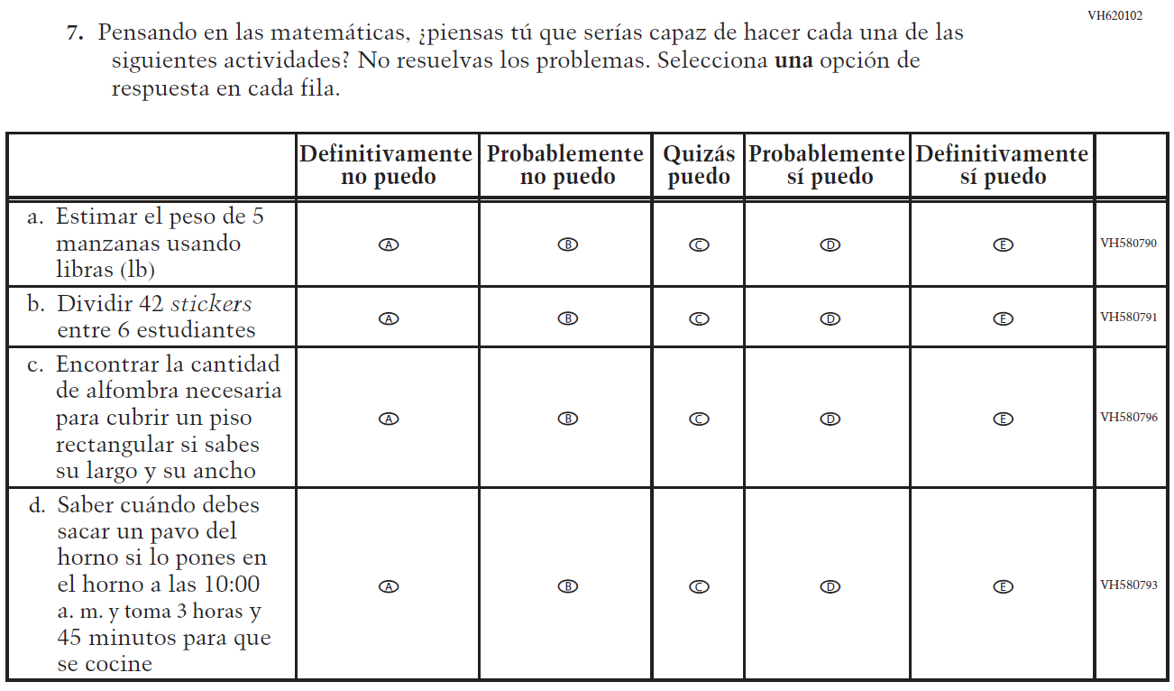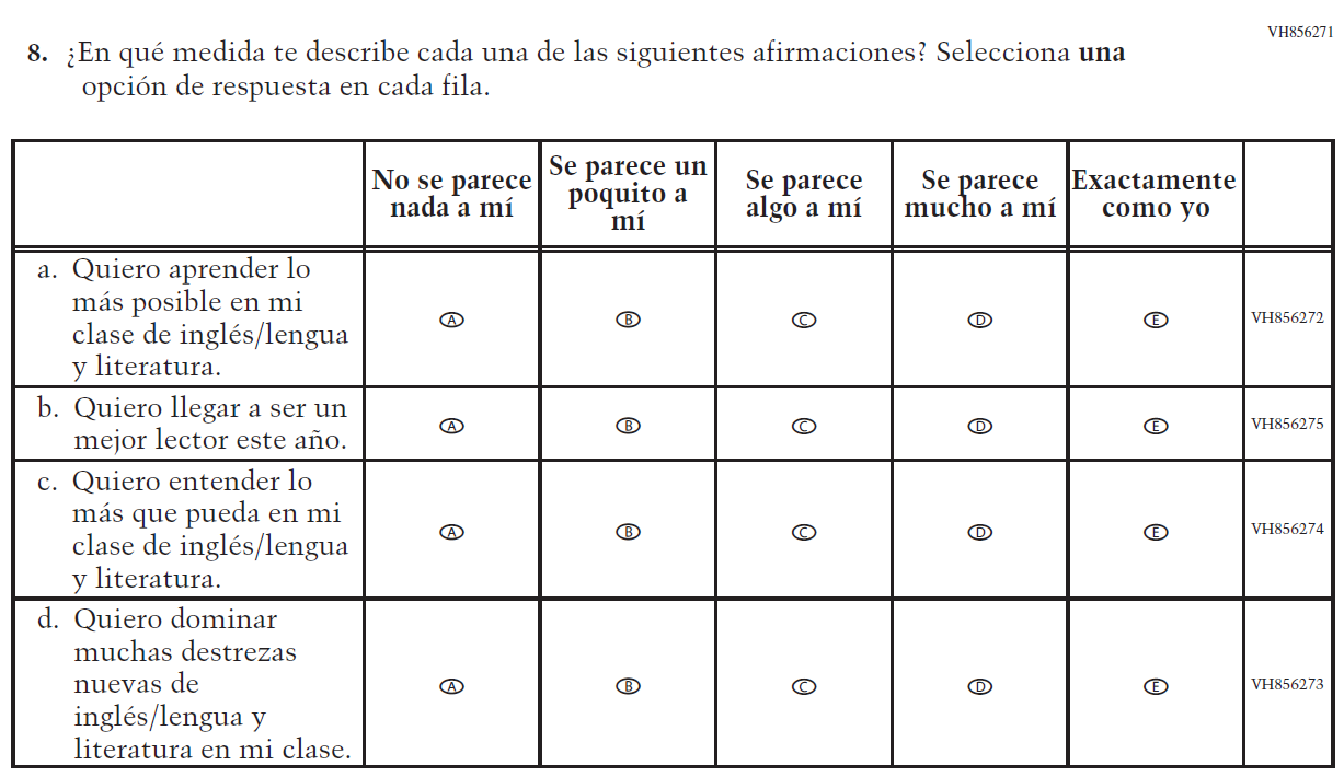 Appendix J-1-s: Spanish Translations of Student Questionnaires 5