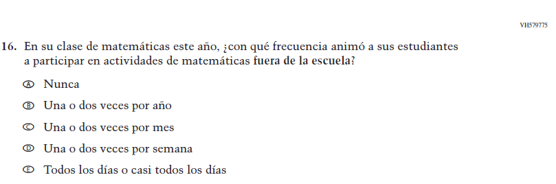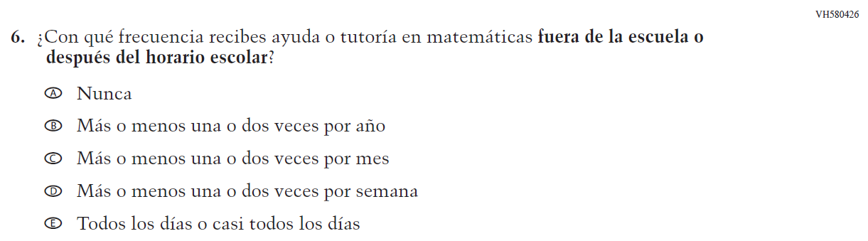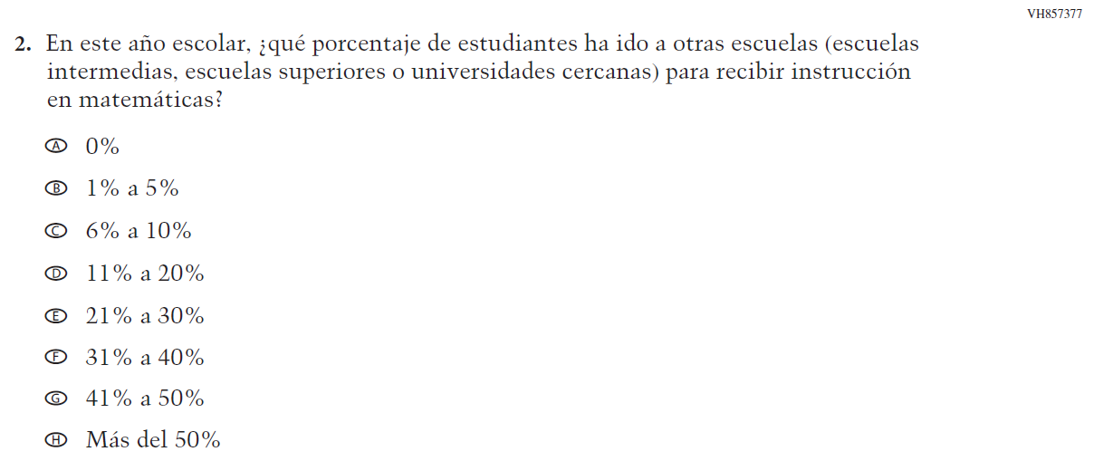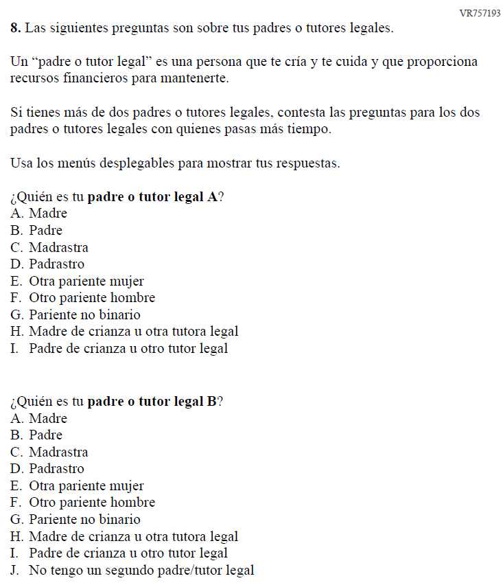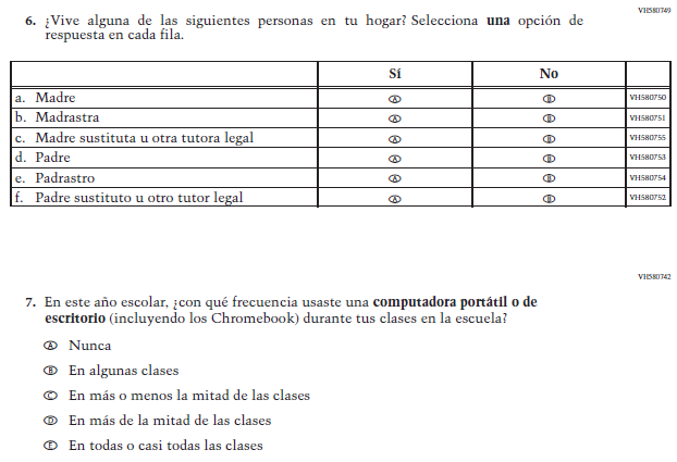 Appendix J-S provides Spanish student, teacher, and school survey questionnaires that will be administered in 2024. Grades 4 and 8 Core, Math, and Reading questionnaires were previously approved in 2022 (OMB# 1850-0928 v.28), and any changes to the items from the 2022 administration are reflected in summary tables. Additionally, grade 8 Science was previously approved in 2019 (OMB# 1850-0928 v.15), and any changes to the items from the 2019 administration are reflected in summary tables. Please note, some of the numbers of the items may be missing or out of order in these printed versions. This will be corrected in the platform view.