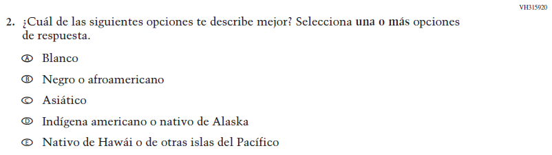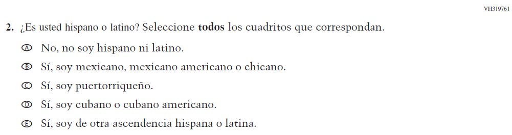 Revised options b and d to align with categories used by the 2020 Census Bureau, |