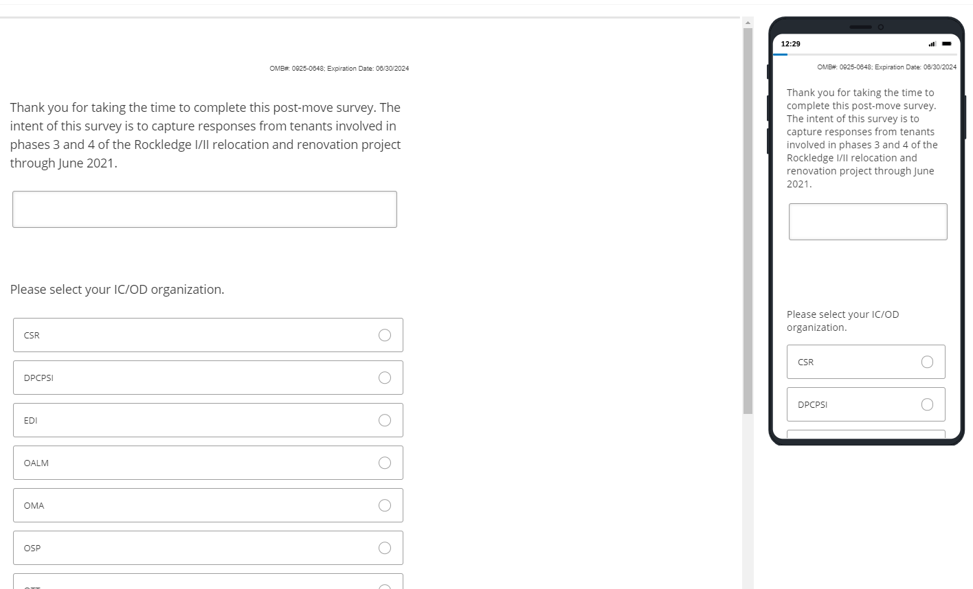 Screen Captures from Draft Rockledge Phase 3 and 4 Post-Move Survey