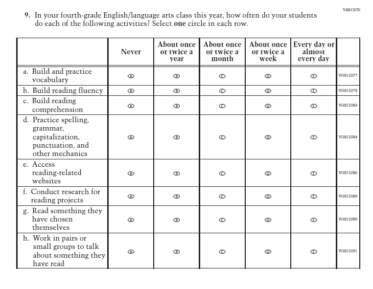 SubItems “g.” through “k.” in the 2022 version of the Item, which reference Social Studies, have been replaced with SubItems that reference Science. SubItem “l.” also references Science. Social Studies is not in the 2024 NAEP Assessment. Science is being administered at Grade 8. |