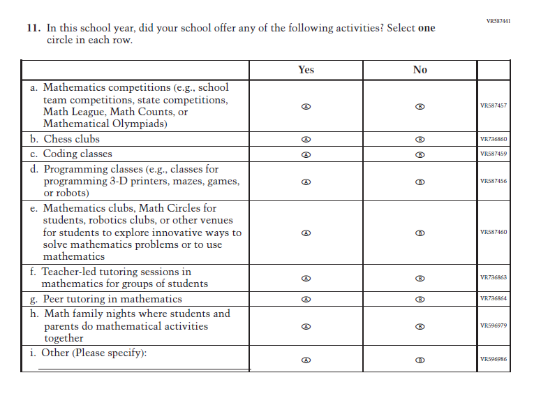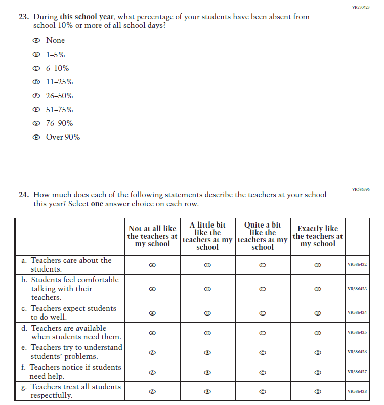 This Item was selected to be dropped to reduce burden due to the addition of the Learning Recovery Items. |