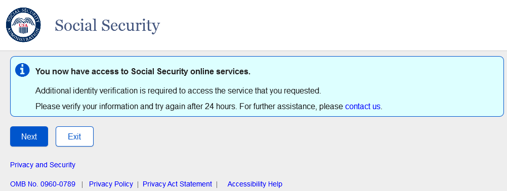 This screen will be used for Standard Account creation when a user attempts to go through Basic to Advanced via SUAS path but receives a Temporary Lock during advanced proofing.