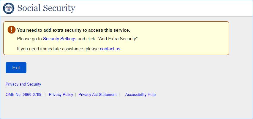 Security Setting – leads the user to Security Settings Page in mySSA application.