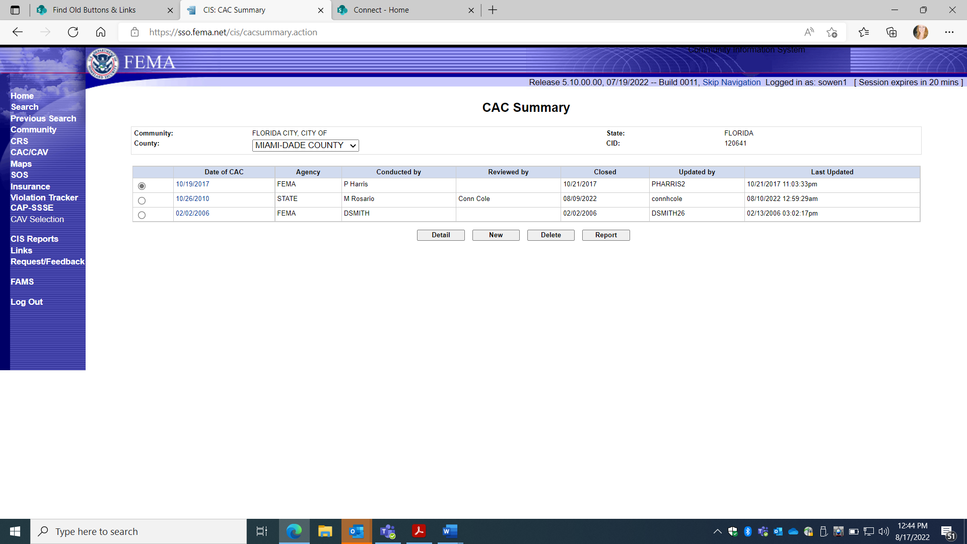 DETAIL: Loads Previous entered CAC Information Collection