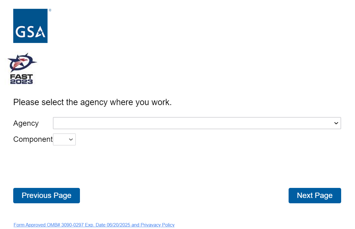 If the respondent selects “Government”, it will bring up a long list of agency names and components for them to choose from