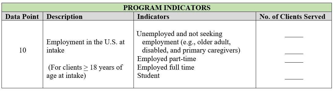 Note: The tool used to count the number of clients that existed the program is based on your agency guidelines for termination of client services.