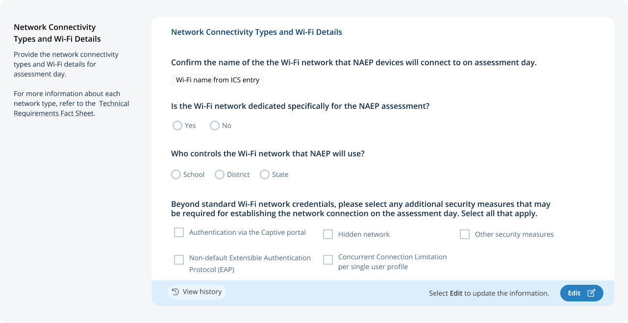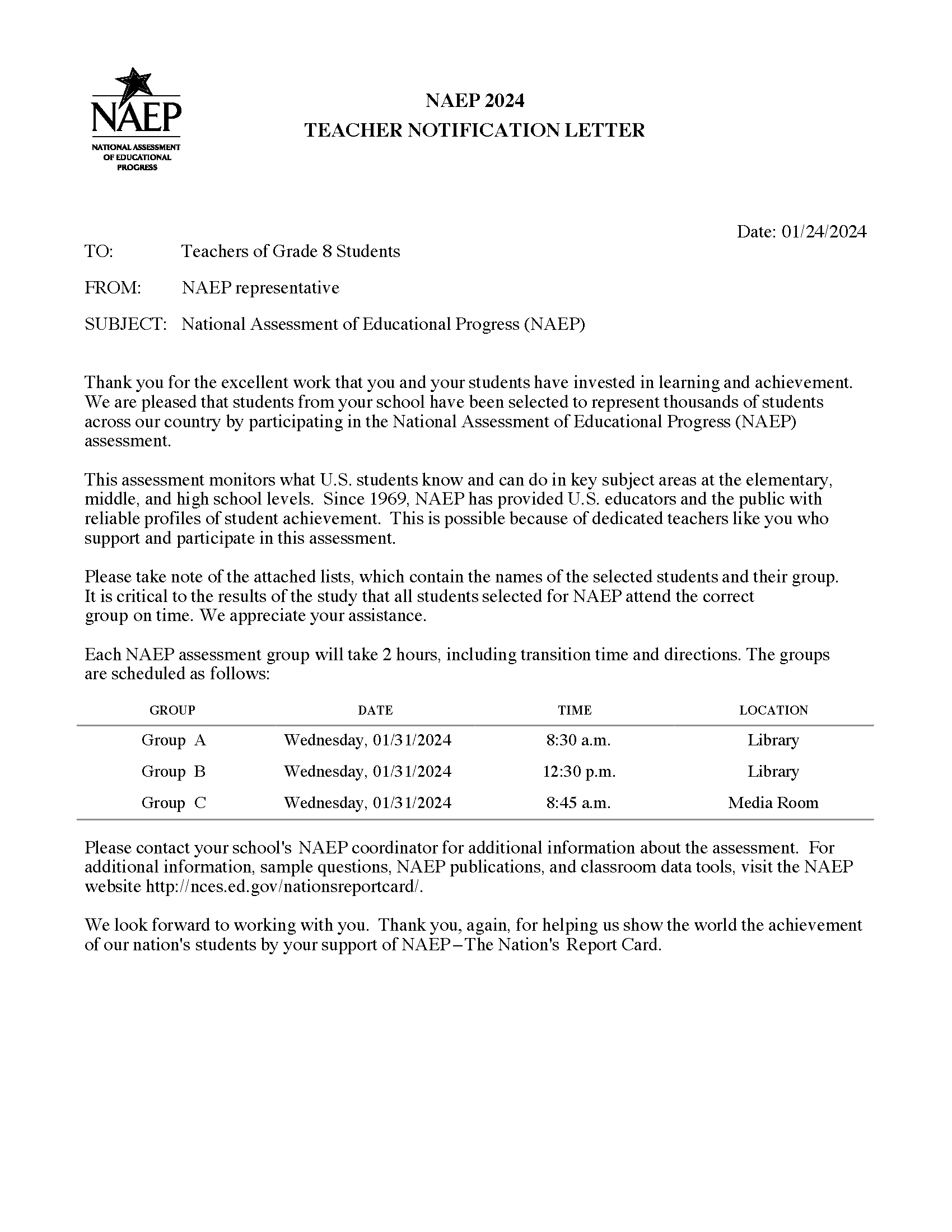National Center for Education Statistics (NCES) conducts the National Assessment of Educational Progress to evaluate federally supported education programs. All of the information you provide may be used only for statistical purposes and may not be disclosed, or used, in identifiable form for any other purpose except as required by law (20 U.S.C. §9573 and 6 U.S.C. §151). By law, every NCES employee as well as every NCES agent, such as contractors and NAEP coordinators, has taken an oath and is subject to a jail term of up to 5 years, a fine of $250,000, or both if he or she willfully discloses ANY identifiable information about you. Electronic submission of your information will be monitored for viruses, malware, and other threats by Federal employees and contractors in accordance with the Cybersecurity Enhancement Act of 2015.
