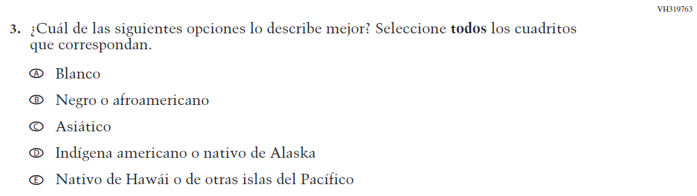 Revised options b and d to align with categories used by the 2020 Census Bureau, |