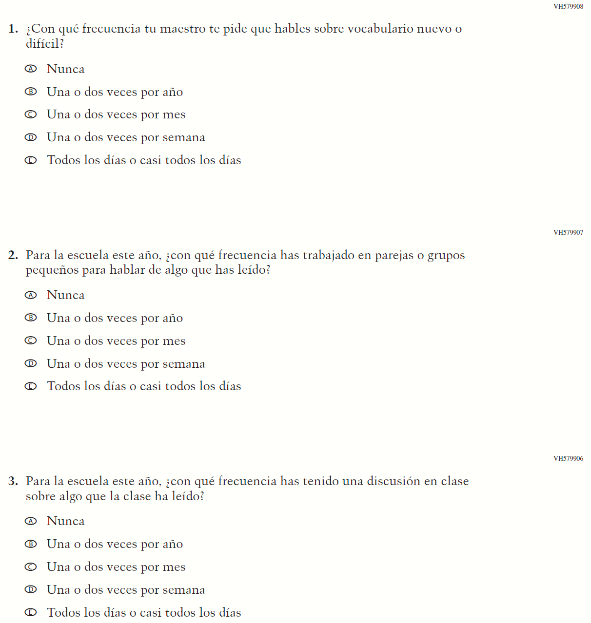 Appendix J-1-s: Spanish Translations of Student Questionnaires 5