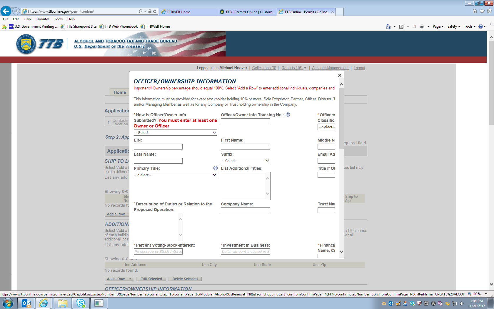 [The screens that follow allow the user to review the submitted information and then submit the completed application to TTB.]