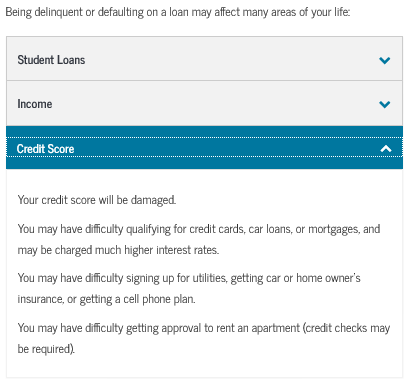 It is very important that you make your federal student loan payments on time. If you are having trouble making your monthly payment, you should immediately contact your federal loan servicer for assistance. |