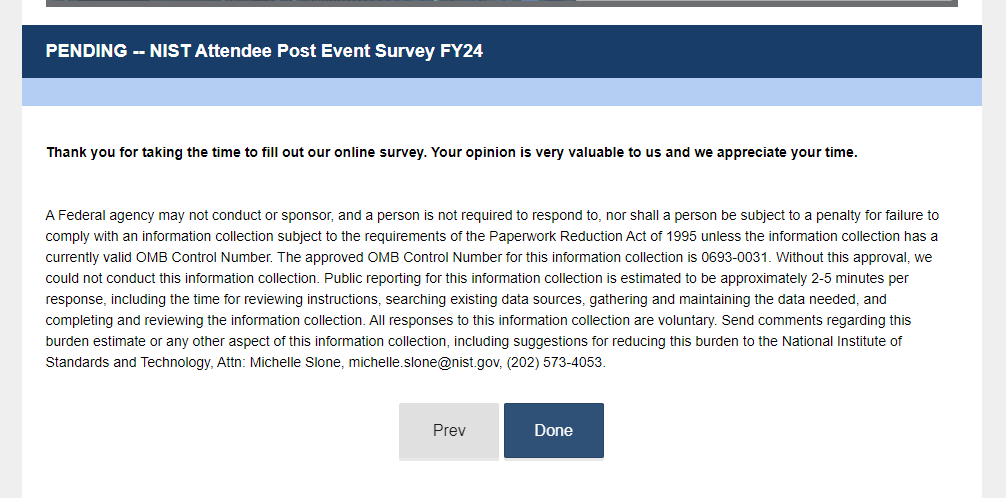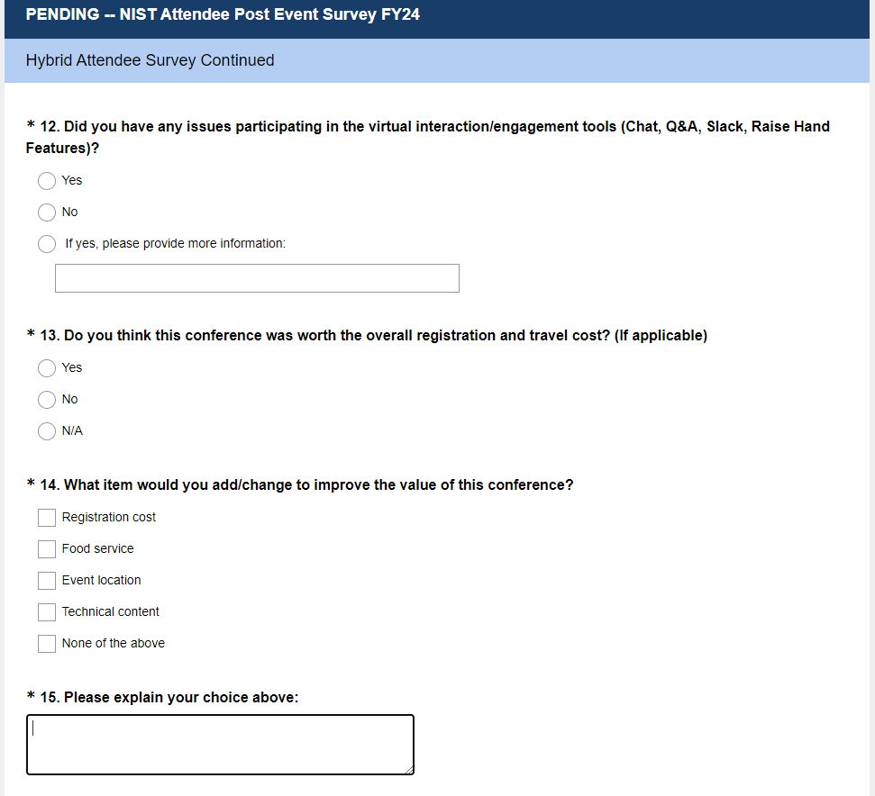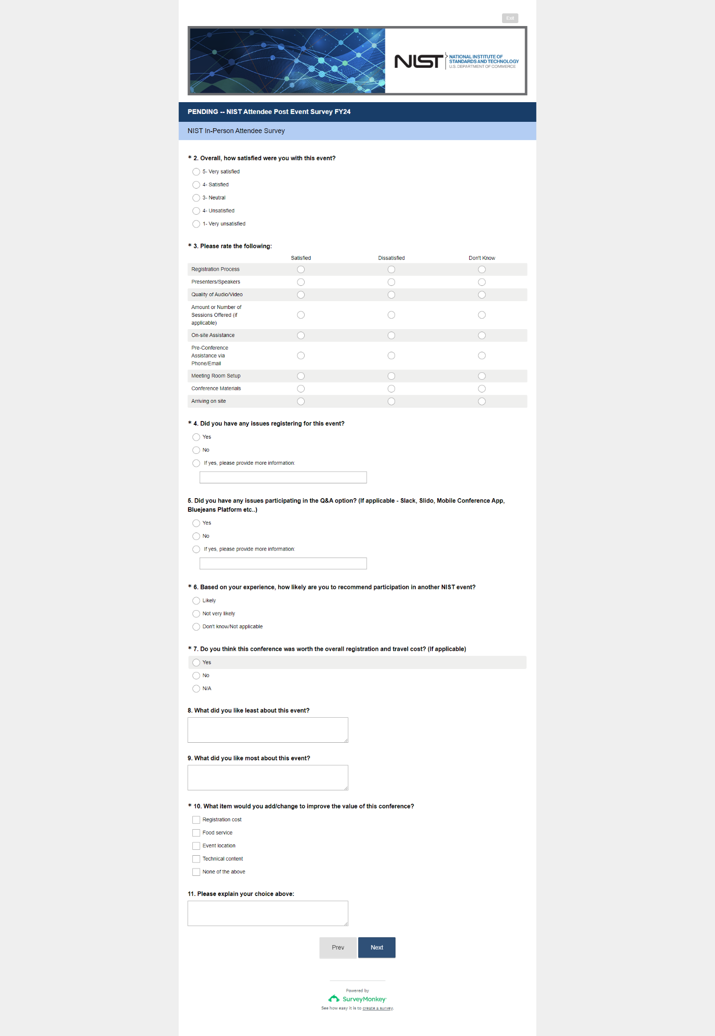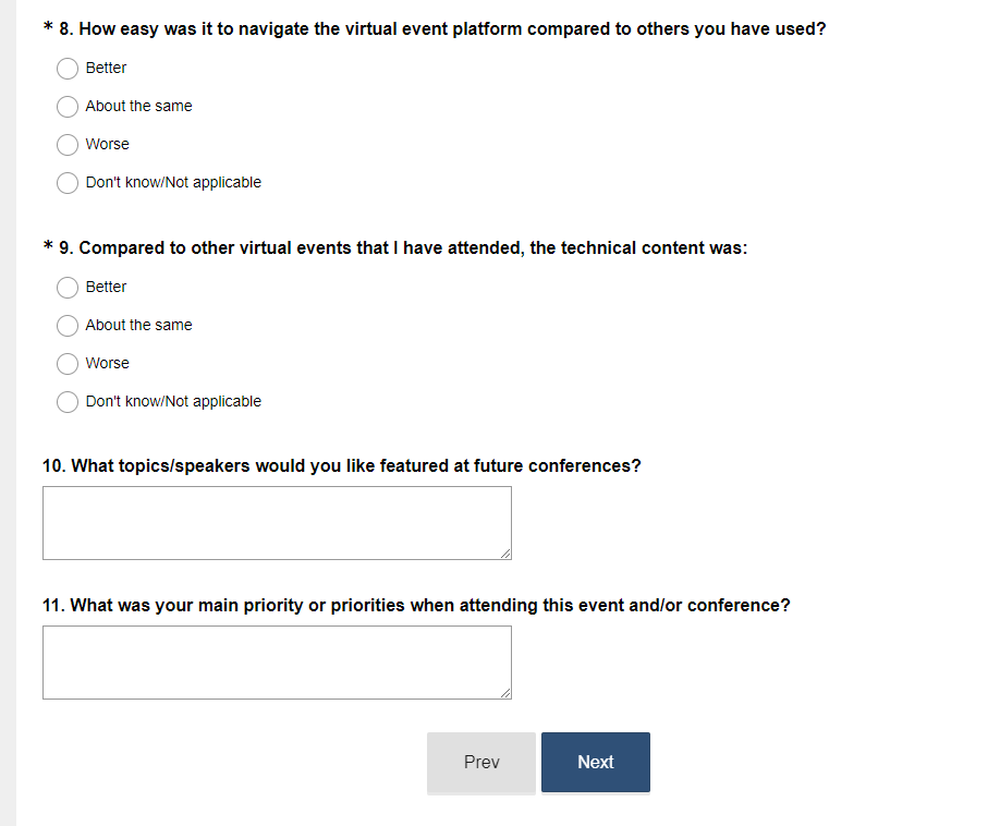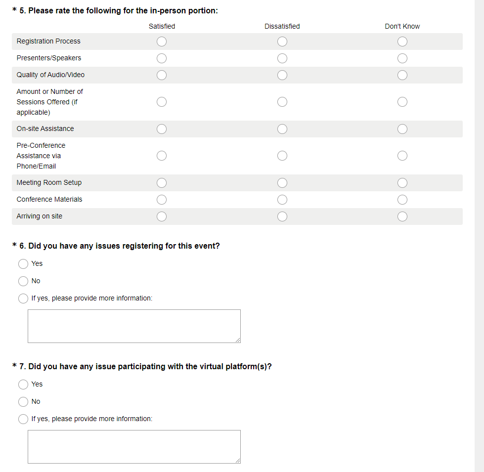 Survey Monkey Screen Shots for Hybrid Conference Program Survey
