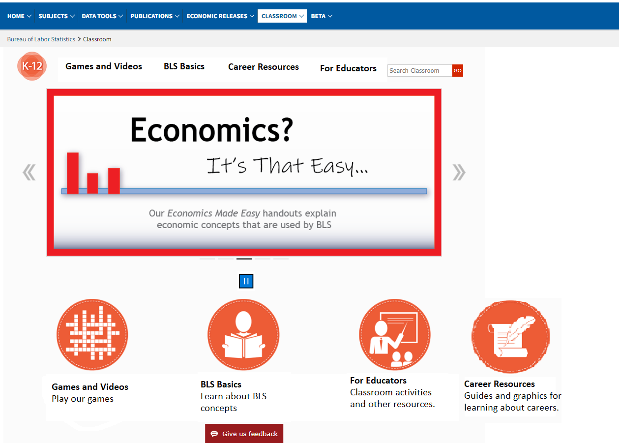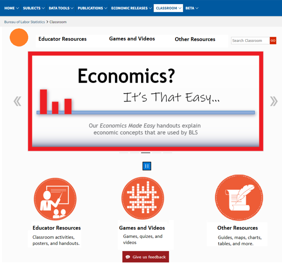 In the second option, we’ve got “Games and Videos,” “BLS Basics,” “For Educators,” and “Career Resources.”