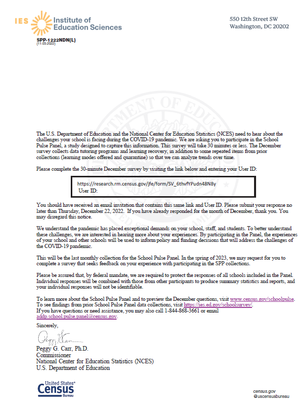 authorized to conduct this survey by the Education Sciences Reform