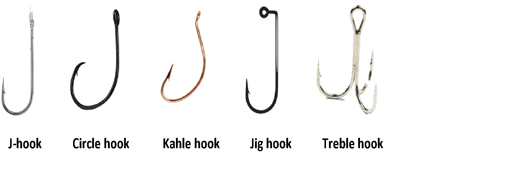 Kahle hook: curved back in an oval shape with the hook point is pointed toward the hook eye; distance between the point and the shaft is much greater than on a circle hook.