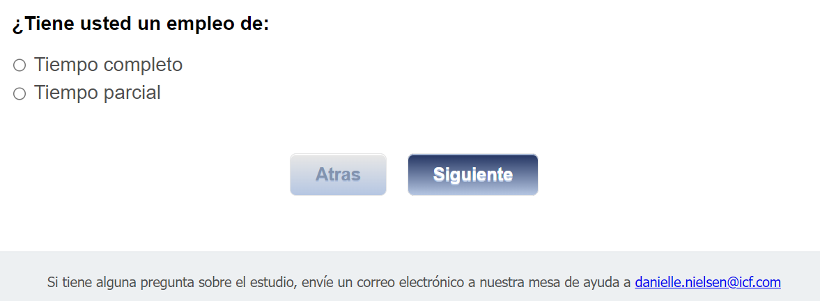 Footer Text: Si tiene alguna pregunta sobre el estudio, envíe un correo electrónico a nuestra mesa de ayuda a <danielle.nielsen@icf.com> |