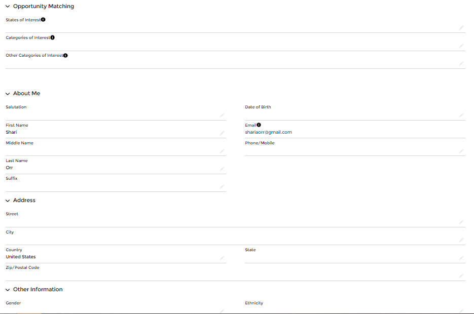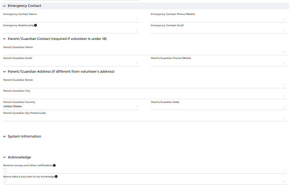 Note: when applying to a specific volunteer opportunity, all applicable information from the profile is auto-filled for the volunteer.