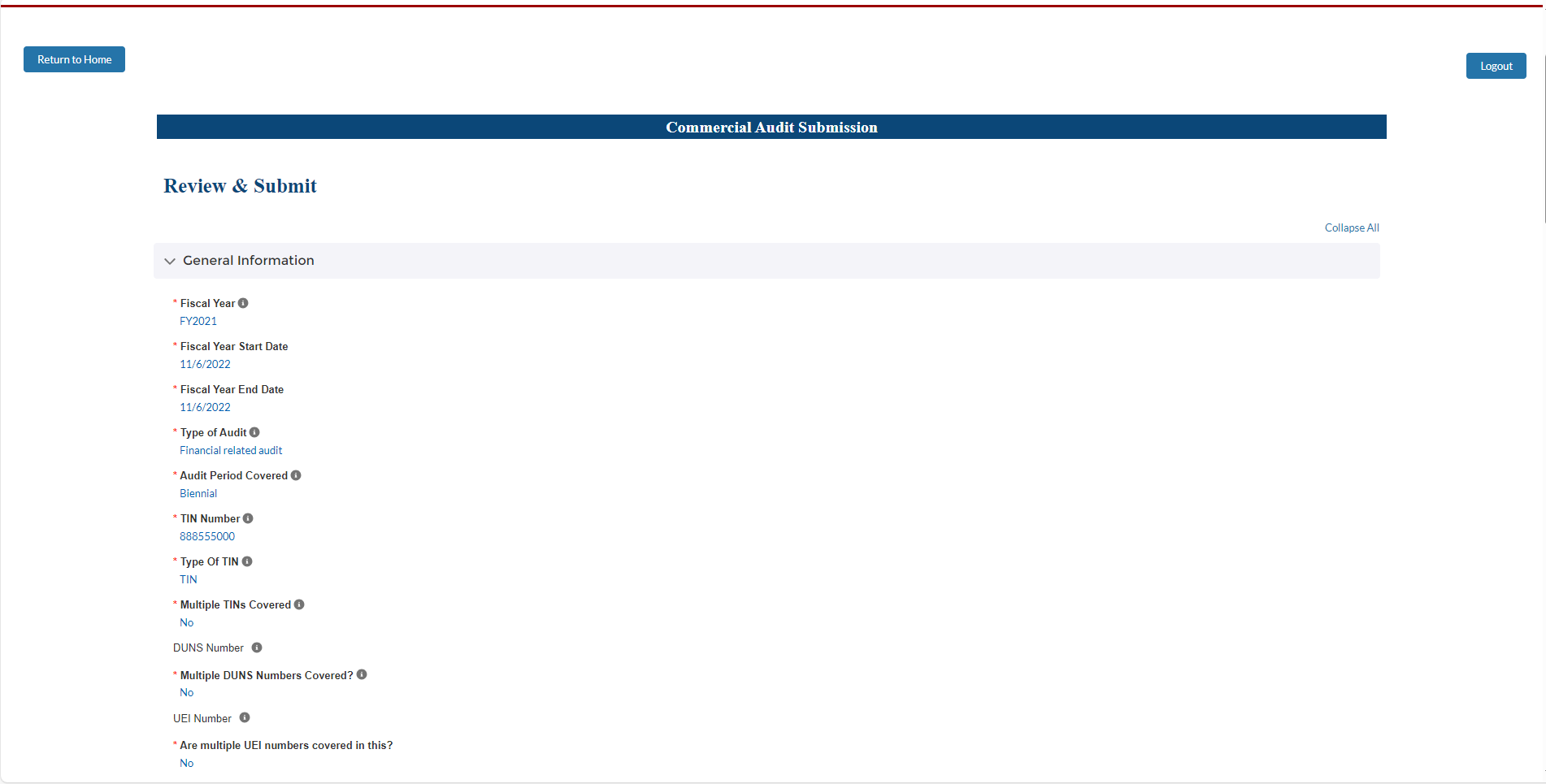 Public Burden Statement: The purpose of this information collection is to follow 45 CFR 75 Subpart F for Provider Relief Program funding. An agency may not conduct or sponsor, and a person is not required to respond to, a collection of information unless it displays a currently valid OMB control number. The OMB Control Number for this information collection is 0906-XXXX and is valid until MM/DD/20XX. Public reporting burden for this collection of information is estimated to average xx hours per response, including the time for reviewing instructions, searching existing data sources, and completing and reviewing the collection of information. Send comments regarding this burden estimate or any other aspect of this collection of information, including suggestions for reducing this burden, to HRSA Reports Clearance Officer, 5600 Fishers Lane, Room 14N136B, Rockville, Maryland, 20857 or paperwork@hrsa.gov.