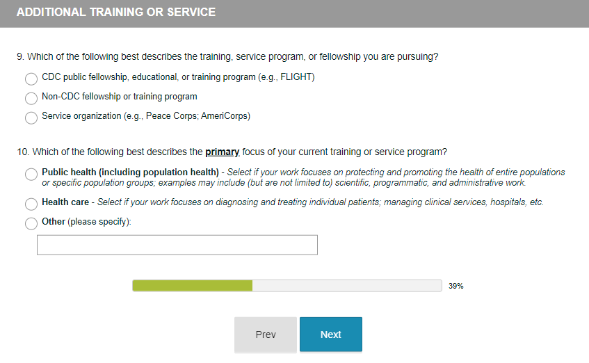 Laboratory Leadership Service (LLS) Alumni Survey Screenshots