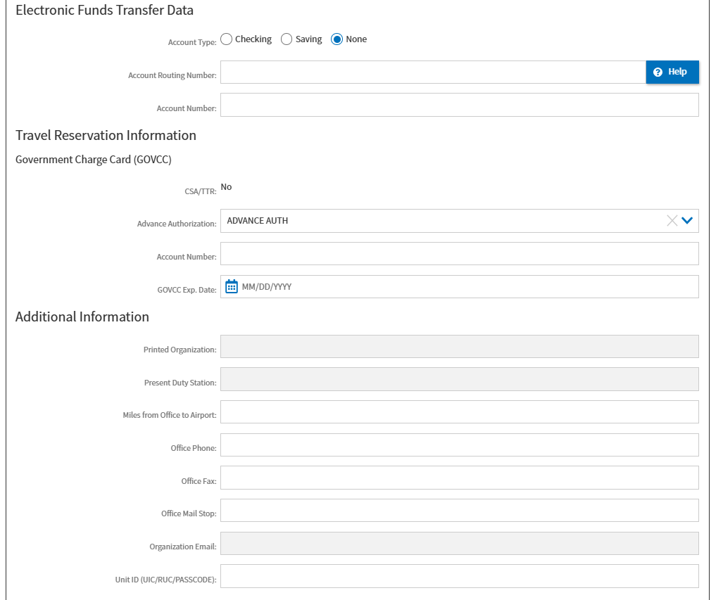 Below are screenshots from the Defense Travel System (eff. 08/10/2017) that display the privacy and ethics policy and disclaimer along with the data entry fields requesting personal information; this in support of the OMB Control Number request.