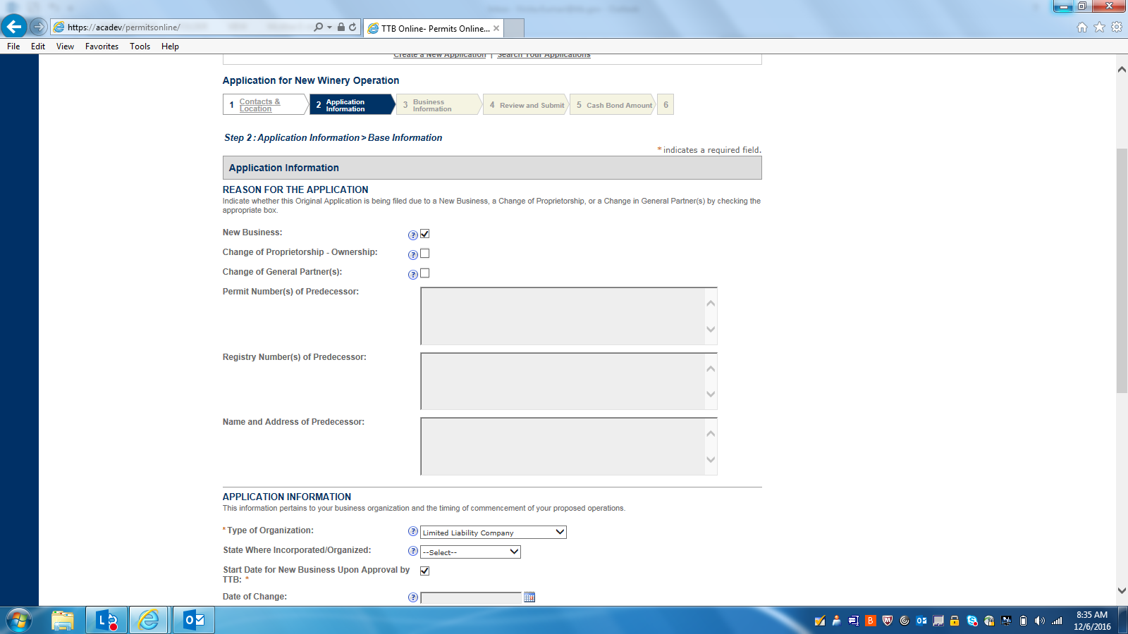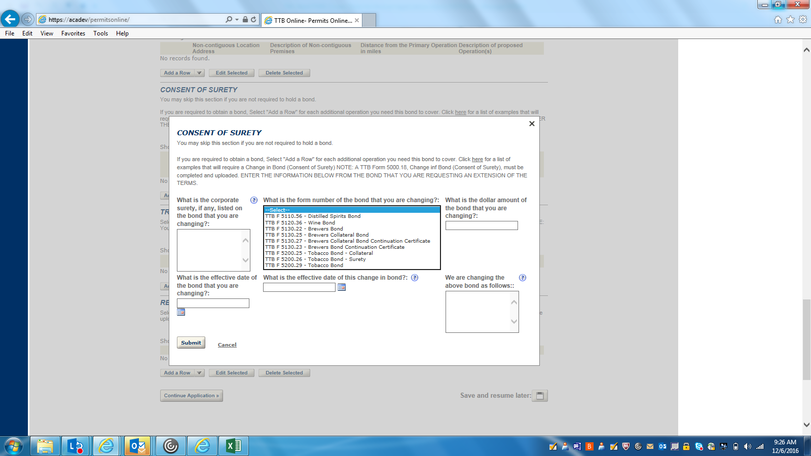 Application to Establish and Operate Wine Premises, and Wine Bond