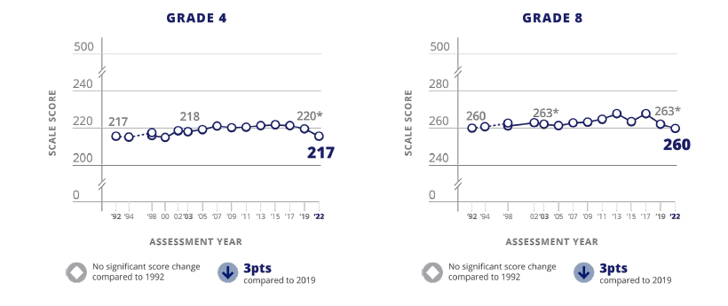 In 2026, NAEP will use a new framework for mathematics assessments at grades 4 and 8. This framework, approved by the National Assessment Governing Board, replaces the last framework which was updated in 2006. Trends in student performance for participating states can be measured since 1992 for grade 4 and 1990 for grade 8.