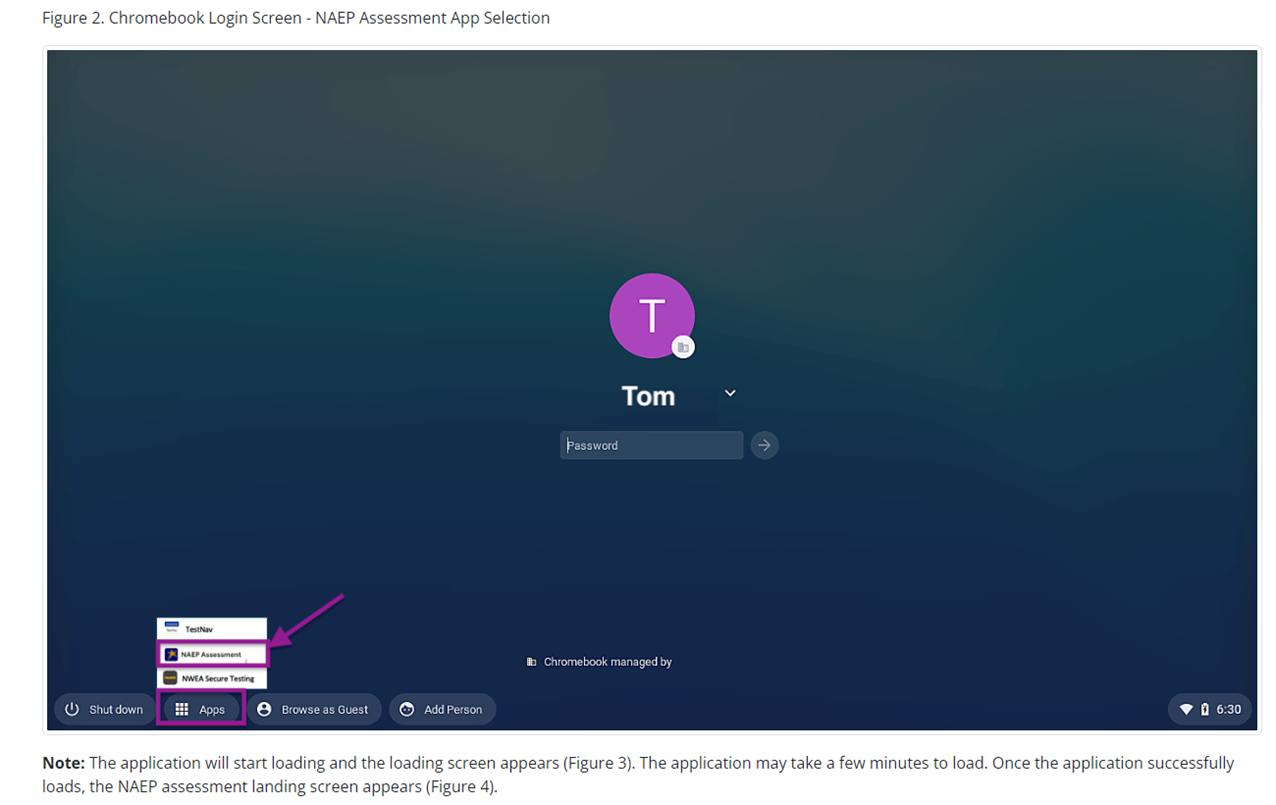 Your school will be assigned to participate using school or NAEP devices later this year. I will identify and contact a district or school person to complete a School Technology Survey to help make that assignment.