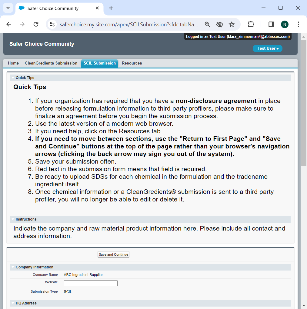 Safer Choice Program: Product and Ingredient Submissions in the Safer Choice Community Cloud-based Salesforce System
