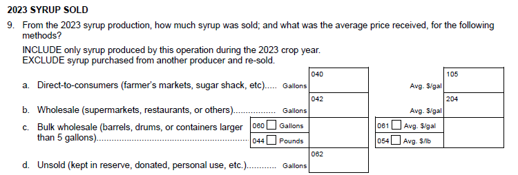 This change include some non-substantive changes for the 2024 Maple Syrup Inquiry based on the 2023 survey and the 2024 Table Olive Crop inquiry. The non-substantive changes are: