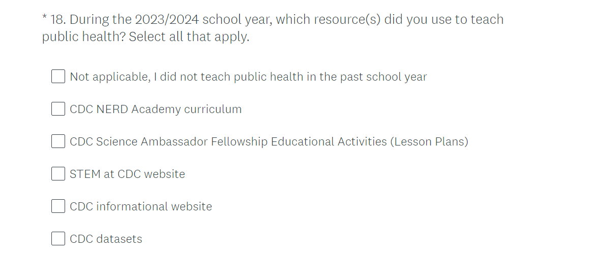 Attachment 2. 2024 CDC Science Ambassador Fellowship Summer Course Survey Screenshots