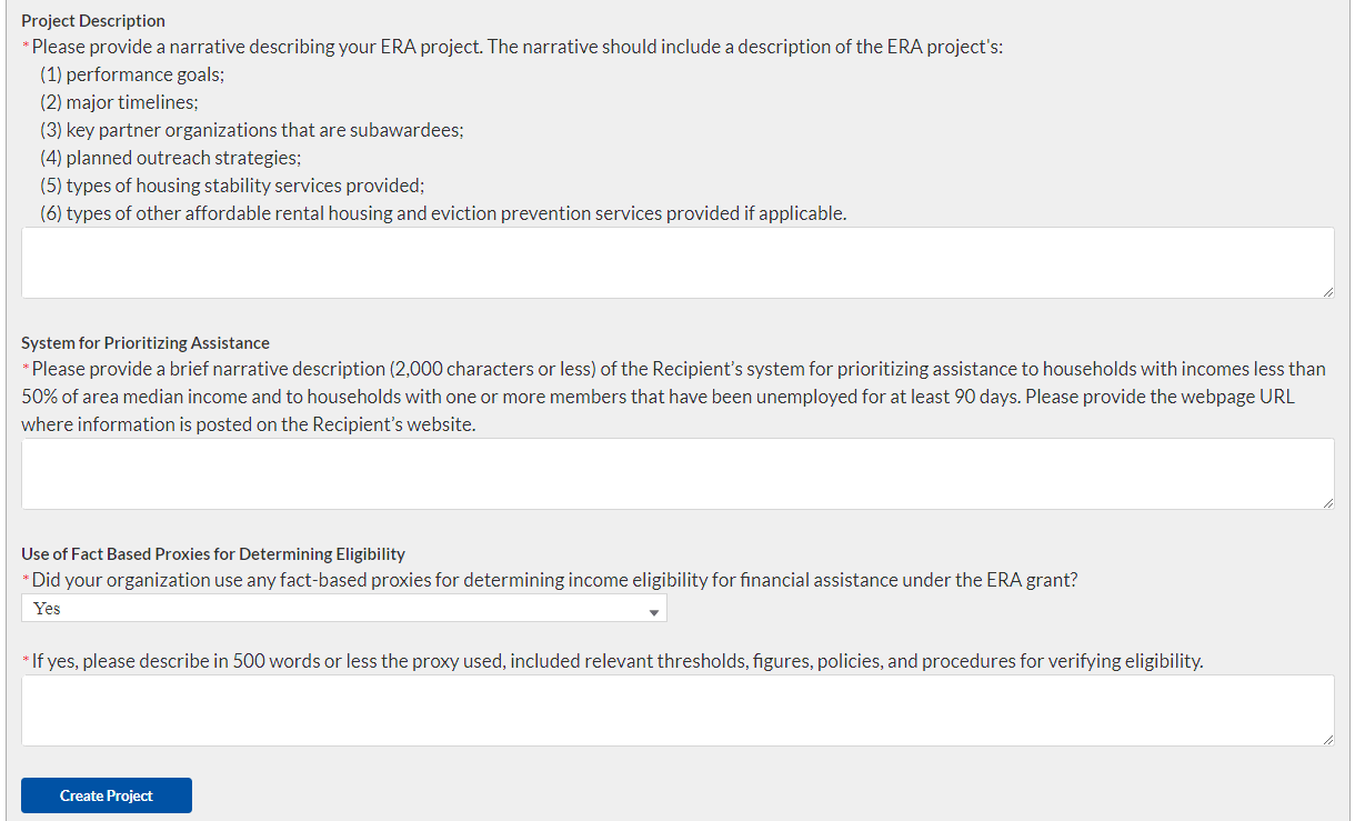 Manually enter the ERA Project Website URL and indicate the Geographic Service Areas served by the project.