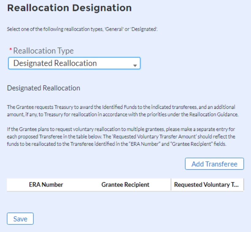 FORM 3: ERA2 – Request to Voluntarily Reallocate Excess Funds