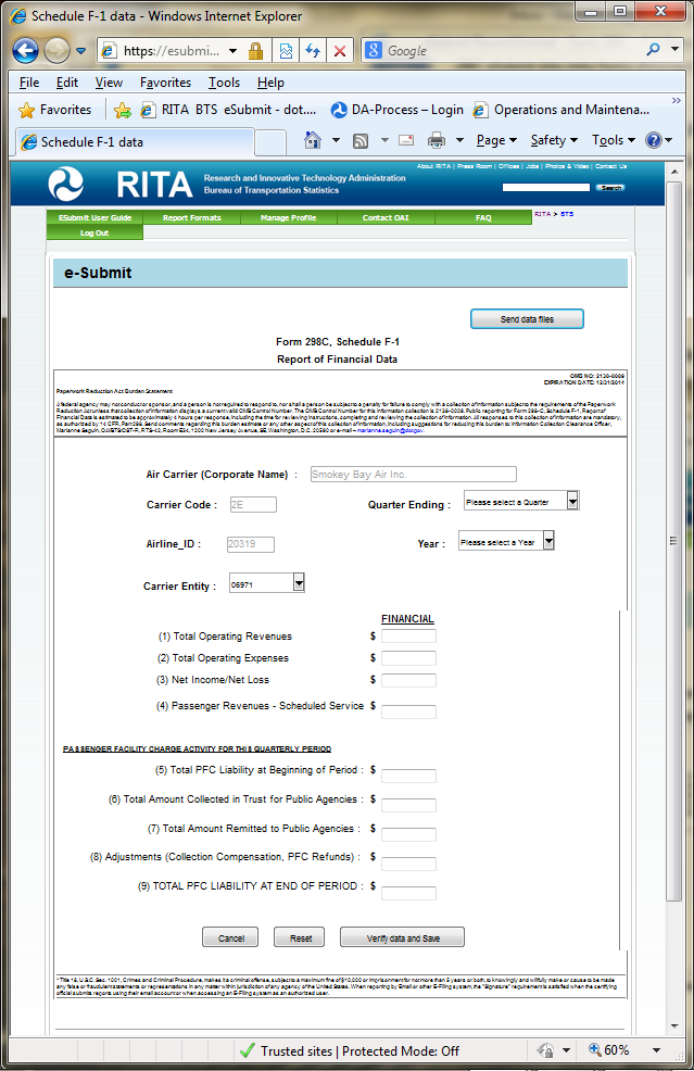 information are mandatory, as authorized by 14 CFR, Part 298. Send