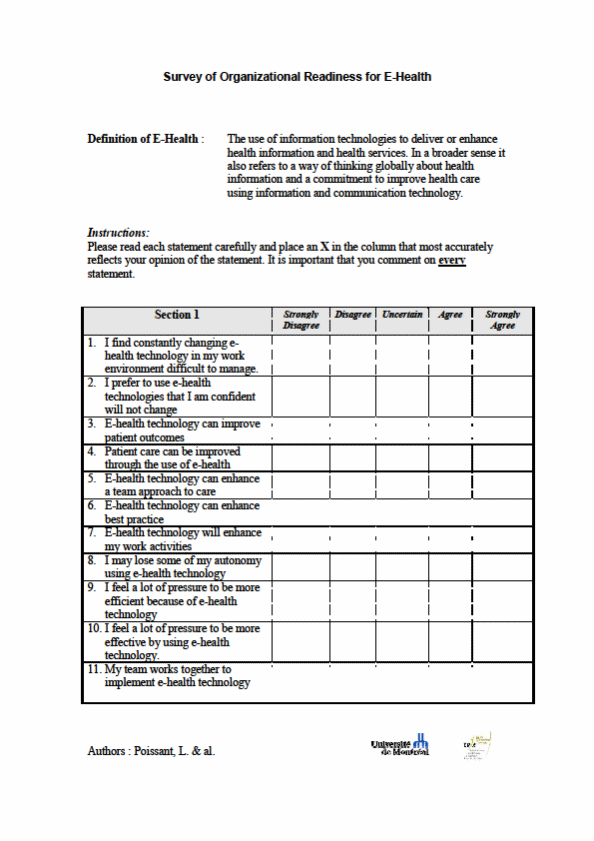 PURPOSE: From a general practice perspective, we seek to understand at baseline, the various factors which may impact implementation and use of the app and PRO data at an organizational level. Organizational readiness for change in healthcare settings is a key factor in successful implementation of new policies, programs, and practice. To provide an overall indication of the likelihood of success as well as context for evaluation findings, all participating sites will complete a paper-based baseline organizational readiness for change assessment.
