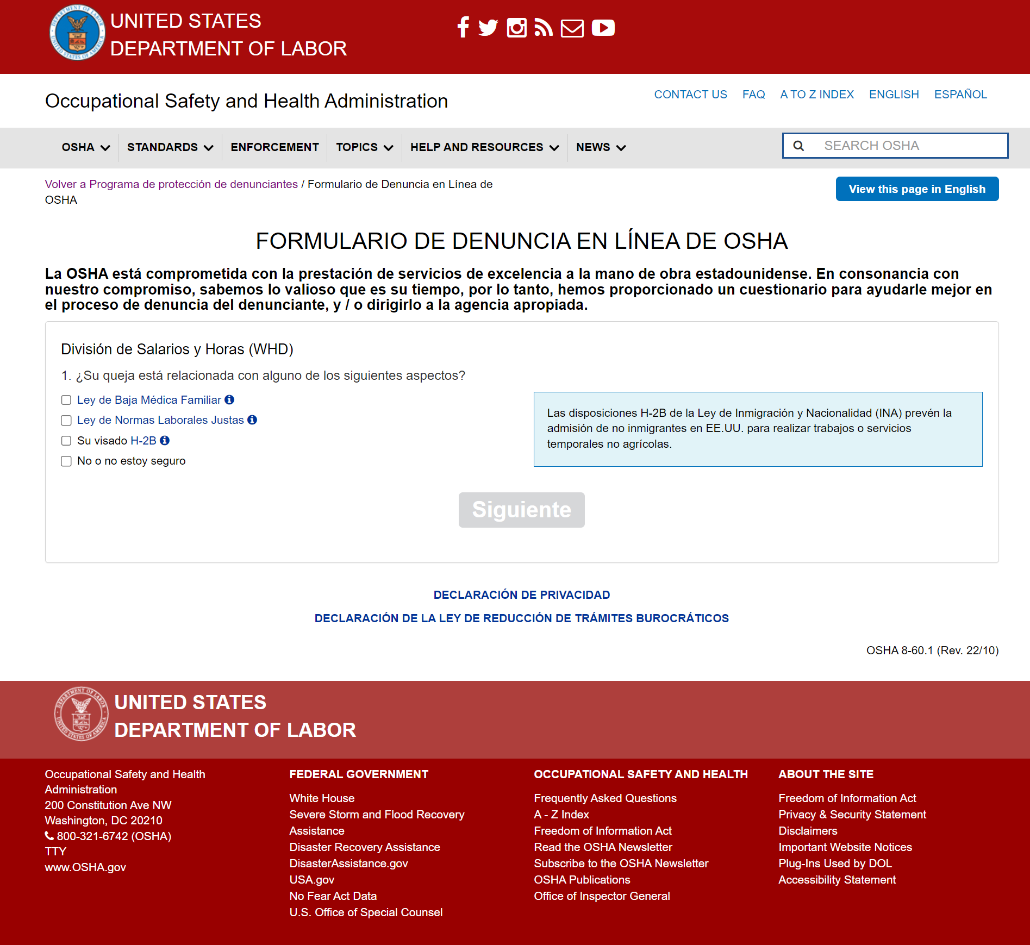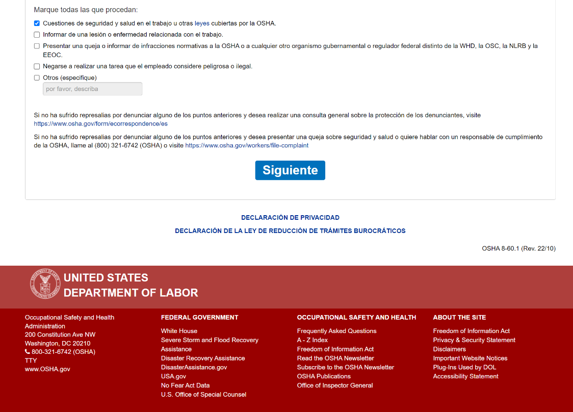 OSHA 8-60.1 Formulario Electronico de la OSHA para Presentar Queja C