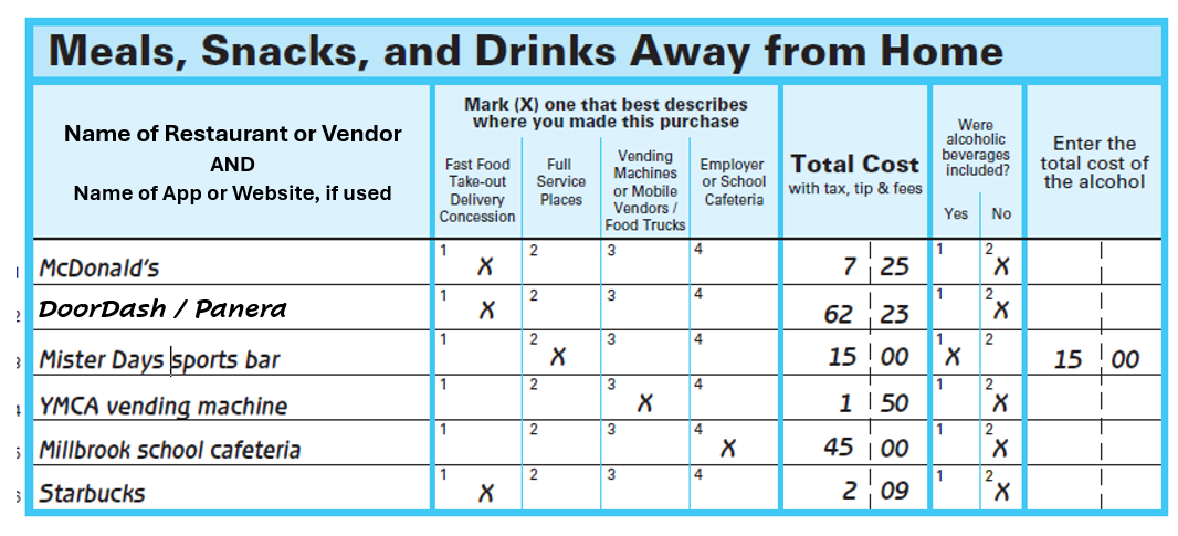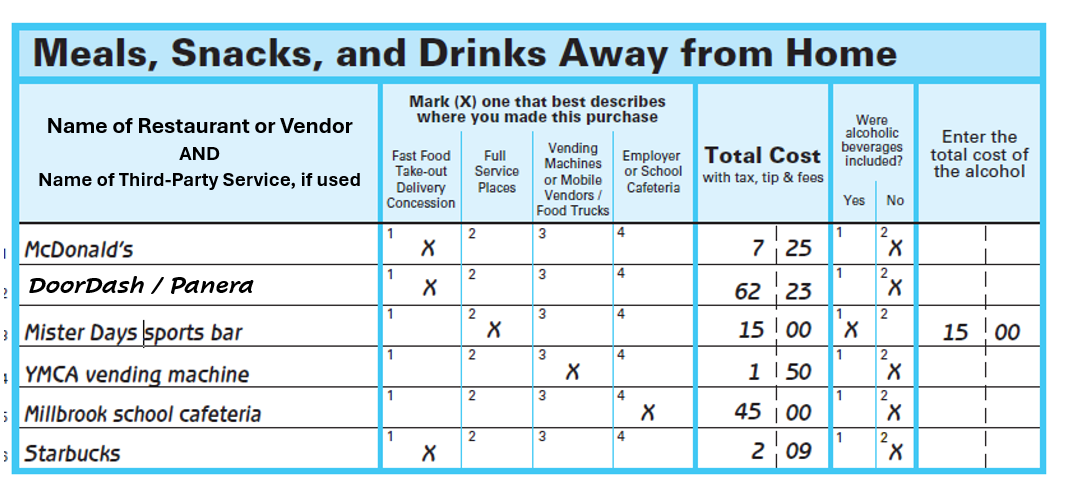 Enter the name of the restaurant, vendor, or cafeteria where you made this purchase. If you used a third-party app or website to order or deliver the food, include the name of that service and the name of the restaurant.