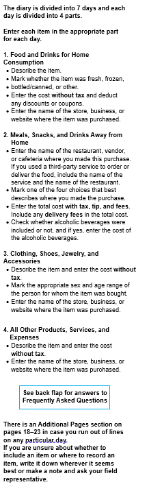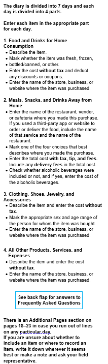 All diary forms and instructions will be based on the current 2024 Diary, which is accessible on the BLS public website: https://www.bls.gov/cex/research_papers/pdf/2024-ced-diary-form.pdf