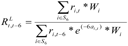 Let S6 be the set of rental units interviewed in the Housing survey in time t in a market basket with valid comparable rents in both time t and t-6. Vacant units that were previously renter occupied are also included in S6 and have current (t) and previous (t-6) month's rents assigned using a vacancy imputation process. Non-interviewed units that were previously renter occupied are also included in S6 and have current (t) and previous (t-6) month's rents assigned using a non-interview imputation process. Let the rent for rental unit i in time t be ri,t and let ai,t be a factor that adjusts for the estimated small loss in quality due to the aging it experienced between t-1 and t. The 6-month estimate of rent change is calculated by: