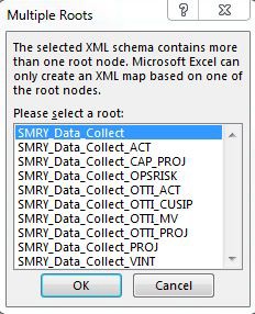 1. Next locate and select the DFAST14A_Summary_Version_1.xsd and click open. The ‘Multiple Roots’ dialog box will appear. Select the SMRY_Data_Collect option and then click ‘OK’.