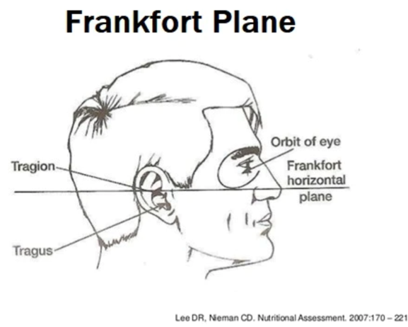 [INTERVIEWER INSTRUCTIONS: Ask the participant to remove their shoes and heavy clothing (if applicable). Ask the participant to stand straight with their back against the wall, head forward, shoulders relaxed. Using a ruler or other straight measurement tool, align the participant’s nose in an imaginary straight line with the tragion or pinna of their ear (see image below for reference). Lower the base of the height meter to the head. If there is a lot of hair, a little pressure should be applied so the height meter touches the head. Mark down the first heigh measurement below. Ask the participant to step off the stadiometer, then step back on and repeat the alignment process to take the second measurement. Do the same for the third measurement, then average the three measurements and mark on the tablet.]