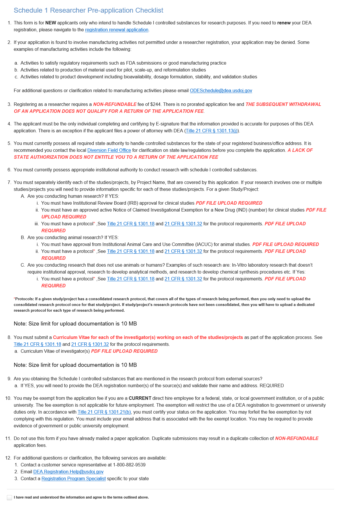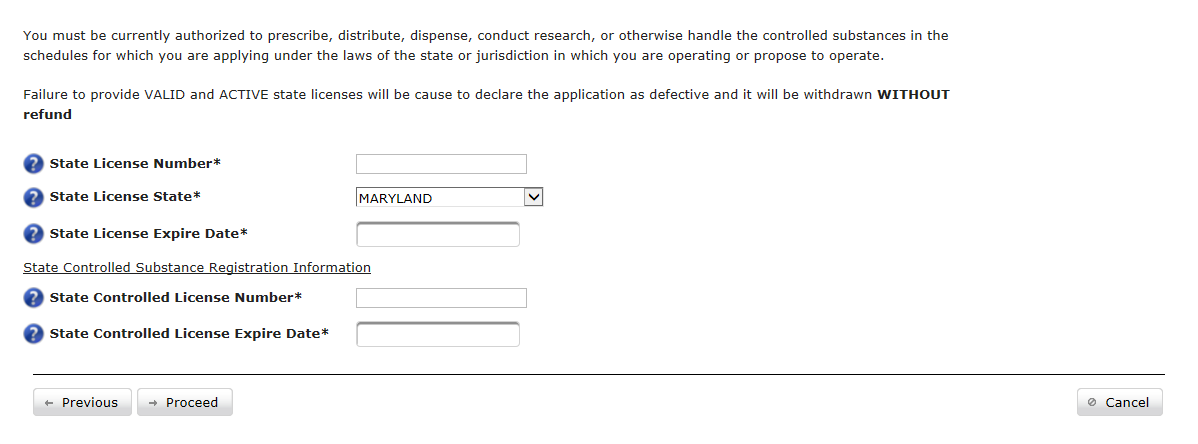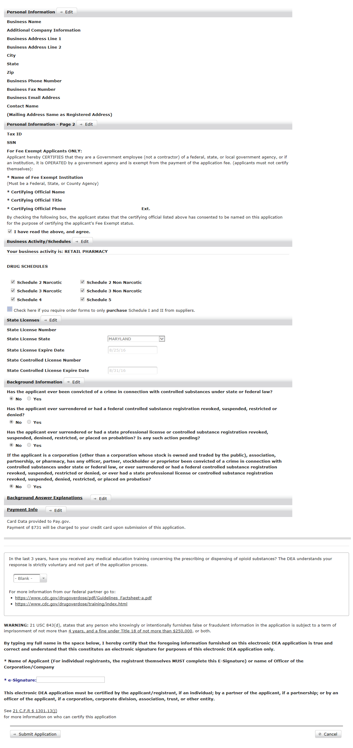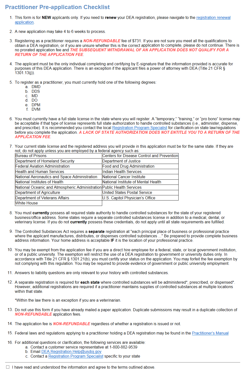 The New Application web form allows potential applicants the ability to apply online for a DEA registration. Note that applying does not guarantee approval. Every application is subject to a thorough investigation, which may end in a rejected application. Application fees are nonrefundable.